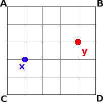 ¶4 Qual é a posição do ponto y? Se estiver no ponto x, posso responder: «3 unidades para a direita e 1 unidade para cima» (tomando os lados dos quadrados como uma unidade). Estando no ponto x, podia dizer que do canto superior esquerdo A fica: «3 unidades para a direita e duas unidades para baixo». Do ponto B fica: «2 unidades para baixo e 1 unidade para a esquerda». Todas as respostas estão correctas, apesar das coordenadas serem diferentes. Mas é claro que existem respostas erradas: «do ponto A, y fica 1 unidade à direita e 2 para baixo» é falso. A verdade sobre uma posição depende de um referencial (ex: em relação ao ponto x), por isso é uma verdade relativa - um proposição que é verdadeira consoante o contexto.